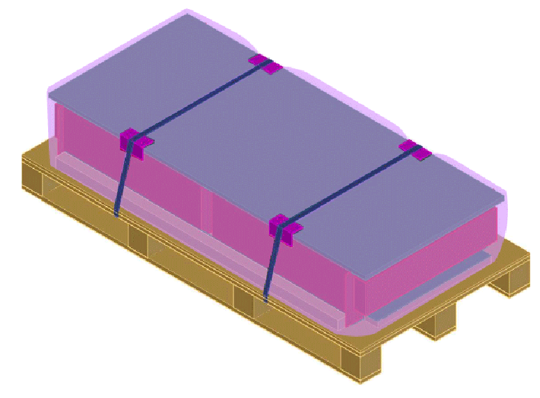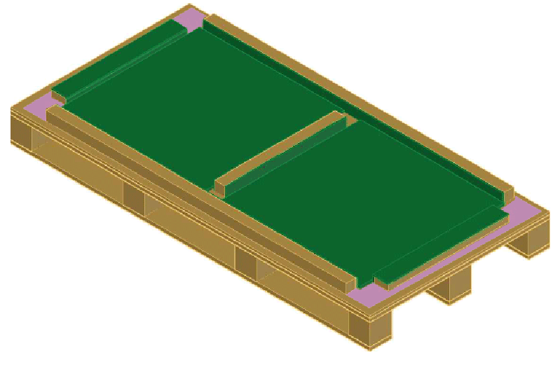 6、在木箱(xiang)的長度(dù)方向放(fang)置如圖(tu)所示4塊(kuài)紙護角(jiǎo),并在相(xiang)應位置(zhi)打包,固(gu)定。